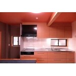ステンレスカウンターのシステムキッチン。カウンター下の収納は全面抽斗式、熱源をガスからIHヒーターに変更しました。