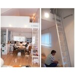 急勾配で小さな子供たちにとって、登り降りがしにくかったロフトのはしごを、木製の階段にリフォームしました。 ロフトは子供たちの遊び場所ですが、登り降りが危険でした。そこでしっかりした階段にリフォーム。 階段はタモ集成材で、手すりは洒落たデザインの鉄製。 階段のササラのタイルはお客様がはめ込み、塗装もお客様がなさいました。 時々遊びに来る、おじいちゃんたちも、登りやすく好評とのことです。