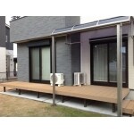 洗濯干しスペース以外にもウッドデッキを活用したいとのことでしたので、2部屋から出入りできる大きめのウッドデッキを設置し、一部に物干し付きのテラス屋根を取付けました。屋根も広めのものですので、雨に濡れず洗濯物の外干しができるようになりました。
