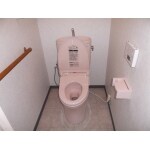 ピンクのトイレにして、手摺を取り付けました。