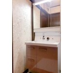 浴室は古いお風呂を解体しユニットバスを入れ替えます。ご要望のテレビがあるリラックスできる空間とするためのユニットバスを提案、テレビをオプションで付け、パネルは全面落ち着いた色調の鏡面パネルに。出窓の気になる汚れはサッシのパッキンを交換し、出窓の天井部分はダイノックシートを貼り清潔感を出し対処。 洗面室は化粧台を入れ替えたほか、壁・クロスと床のクッションフロアを貼り替え、化粧台との色調が取れたラグジュアリーな空間を提案。