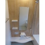 タイル床にステンレスの浴槽で寒々しい浴室。。。