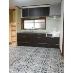 昔ながらのキッチン。開き扉だと、使い勝手が悪いです。キッチンのつなぎ目も多く、お掃除が大変でした。