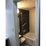 お風呂掃除がしやすいよう、取り外し可能なカウンター付きの浴室です。 その他にも、限られた空間を有効活用し、寛ぎのバスタイムを演出する工夫が満載されています。