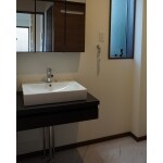洗面化粧台はリクシルのルミシス ベッセルタイプです。カウンター下がオープンスペースになっているので、車イスでも便利に使っていただけます。