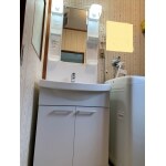 洗面化粧台の排水から水漏れが・・・照明も壊れているので修理ではなくお取替えのご相談でした。 また、使い方がシンプルでボウルが陶器製の商品をご希望でした。