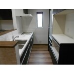 カウンターキッチンを採用し、明り取りを設け、手前には全面に調湿・ハウスシック効果のあるエコカラットを配置しました