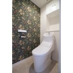 お掃除がしやすいように、汚れが落ちやすくつなぎ目のない便座や、掃除がしにくい部分も手が届くなどの機能をもったトイレとなりました。アクセントクロスには輸入クロスを使用。アクセントの映えるトイレ空間へと生まれ変わりました。