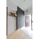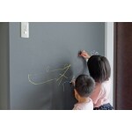 玄関にある大きな黒板。こちらは黒板クロスを使用しています。落書きしても玄関なので、チョークの粉が落ちてもそんなに気になりませんね。