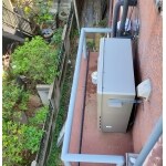エコジョーズです。2階への設置でした。梯子を使用しての作業でした。