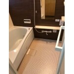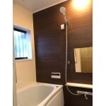 T社のサザナHTシリーズ Sタイプを設置致しました。 アクセントパネルは「プラナスブラウンウッド」、床は「ライトブラウン」で低価格でもお洒落な浴室空間に仕上がりました。