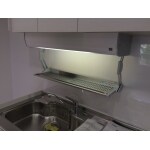 引き出し式の扉のキッチンにして吊戸の下にも伸縮する棚を設置して使いやすくしました。