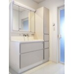 洗面化粧台本体で収納を充実させる事もできますが、洗面台の横に収納ユニットを設置すると、収納力がUPするだけでなく、使い勝手も良くなりますよ。また、現状サイズ(1坪)をサイズUPさせることも併せて考えてみたら、いかがでしょうか?