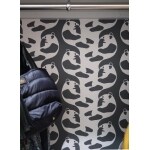 以前は、浴室だった所をウォークインクローゼットにしました。 パンダが印象的なアクセントクロスをご提案させていただきました。 お洋服やカバンの隙間からチラっと見えるパンダがとてもかわいいです。
