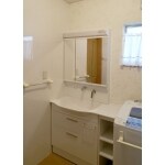 洗面ボウルまわりに物を置けず不便で、収納も少なめ。すっきりと明るい洗面室をご希望。