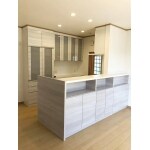 吊戸棚を取ったことで、すっきりした空間になりました。カウンター背面も収納がついているものを選択していただいたので、収納量も増えました。