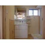 使い勝手重視の洗面化粧台、壁出しの水栓金具は蛇口周りの掃除がとても楽です。