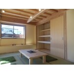 畳の間を設けました、客間にも寝室にもなります。 大きな窓が光と風を運んでくれます。 収納の中身は全て桐材、調湿作用の高い桐材には他に、消臭効果や防虫効果もあり収納には最適です。