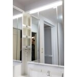 浴室は今後の事も考え、段差の解消や手摺の設置を行いバリアフリー化。電球の交換サイクルが短くて負担にならない様に天井付けのLED照明を取り付け。 洗面台はトールキャビネットを設置、収納しやすく使う・仕舞うが容易になり、洗面室がとても使いやすくなっています。