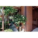・外観はそのままに植栽などを活かしながらスロープを設置し、バリアフリーのアプローチをつくった ・南面の開口を最大限に広げ、ウッドデッキと目隠しフェンスを新設