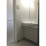 劣化の激しかった脱衣所は、壁・床共に下地から補修。 壁紙を貼り替え、床はベニヤ板の上にクッションフロアーを敷きました。 ホワイトを基調とした、明るくさわやかな内装になりました。