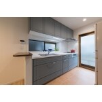 ブルー好きな奥様が一目惚れされた、クリナップのシステムキッチン「ステディア」のブロカントシリーズ:ブルー・ドゥ・パリ。フランス伝統的なカラーと框組の扉をモチーフにした艶消し塗装が美しいアンティークなイメージのキッチンです。