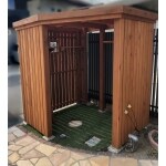 【お客様より】木製のサイクルポートは、イメージ通りにできあがりました!!ステンドグラスもうまくデザインに組み込んでいただき、他にはないオーダー品に満足しています。