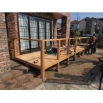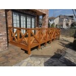 防腐剤を注入した桧材を使い、さらに外部木部用の塗料を2回塗りし、腐朽しにくくしました。 安心してお孫さんと遊べます。 玄関はアク抜きやシミ抜きをし車の塗装などに使われる塗料で 仕上げました。新築築当時の輝きを取り戻しました。