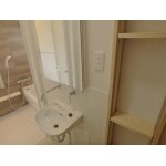 ミラーキャビネットと収納、可能なものは全て埋め込みました。コンパクト且つシンプルな商品を選びました。