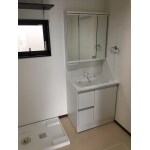 (旧積和建設西東京株式会社での事例です。)今までは着替えのスペースも無かったため、プライバシーの確保も含め、今回のリフォームを機に、ゆったりとした洗面室を作りました。