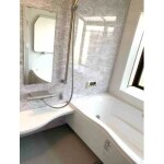 お風呂は機能面にも優れたユニットバスをご提案。 首元がゆったりした浴槽で、リラックスできるお風呂に。 洗面は洗濯機上に可動棚を設置し、収納力をアップ。 レンガ調の壁紙でおしゃれになりました。 玄関収納は今まで入りきらなかった靴や物がたくさん入る、トールタイプにしました。