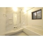 お風呂は広くしたい!とのご要望でした。 浴室換気乾燥暖房機付きで便利、手すり付きで安心です。 ゆったりした浴室で疲れを癒して下さいね。