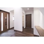 玄関を入ると正面には飾り棚、左側には家族の靴をしっかり収納できる大容量のシューズクロークがあります。上部は吹き抜けになっているので明るい玄関です。