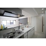 リビングの雰囲気とあわせ、ホワイトの清潔感あふれるキッチンスペースに仕上げました。カップボードで収納もバッチリです。
