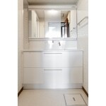 ジャストサイズの洗面化粧台で交換しました。三面鏡収納や、引き出しキャビネット収納で、大容量収納が叶いました。