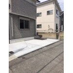 現状の砕石を鋤取し、路盤整地を作り、緑切の為にピンコロ、地先境界ブロックを設置し、ワイヤーメッシュ準備し、生コンクリートを打設、左官コケ仕上げをしました。