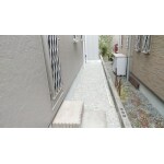 駐車場の後ろ側(物置前)のスペースは、いずれお子様が大きくなられた時に、縦列にはなりますが、止めれる様に、モルタル仕上げとしました。おうちの周囲は、雑草対策として、防草シートを敷き、その上から化粧砕石を敷き詰めました。隣家との境に、フェンス等が無かった為、砂利を踏む音で、少しは防犯にも役立つかと思います。