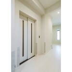 将来に備えてホールに新設したホームエレベーター。「平屋と一緒の感覚」で暮らせる。