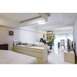 ・壁を撤去してLDKとひと続きにし、オープンなベッドコーナーに ・ベッドコーナーにロールスクリーンを設置し開け閉めを自在に