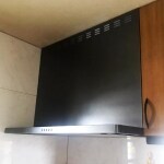 クリナップ・フラットスリムレンジフード(シロッコファン)に交換。 既存のキッチンに合わせて色はブラックにしました。