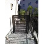 門扉を開いた時に取っ手が外壁にあたってしまうので、クッションを壁に接着いたしました。