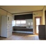 収納スペースを増やすため、吊り戸付きキッチンに入れ替え、通風ドアで通風と採光を確保し、内装は自然素材(赤松床板。珪藻土クロス貼り)の空間です。