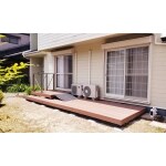 簡易スロープを使って出入りができるようにし、お庭からお部屋へはウッドデッキ調のアプローチ、転倒防止と布団干しを兼ねた手すりの設置をご提案。
