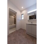 1階はW750の化粧台を設置し、リビングのある2階の洗面は、浴室を無くし、洗濯なども出来る、広々としたユーティリティ(家事室)としました。