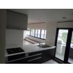 傷や熱に強いセラミックカウンターが特徴的なキッチンリフォーム