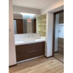 既存の洗面同様、広々とした洗面化粧台に生まれ変わりました。 また引き出し収納はフルスライドタイプになっており、キャビネットの隅々まで収納することができます。