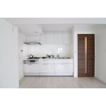 木目調から白に変更したことでスッキリとしたキッチンになりました。キッチンまわりの床もフローリングで統一しました。