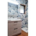 機能面、デザイン性にご納得いただける商品をご提案しました。 洗面所の壁紙は、お客様と一緒に悩みながら決めていきました。