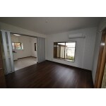 カーペットタイプの床から、重厚感のある板張りの床へとリフォームしました。 キッチンとの間仕切りは開口部分はそのままアルミの引戸を採用しています。 扉部分がスリットになっているため、個々の部屋として完全に遮断でき且つ視界も確保できるようになりました。 クロスも全て張替えています。