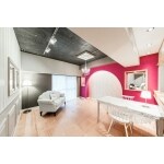 お客様と何度も打合せを重ね、ご要望通りリビングダイニングはワンルームとしました、またキッチンも配管からやり替え、オープンカウンター型へ方向を変えることが実現しました。 また、お客様が最もこだわりのあったデザインを このリビングに存分に表現しました。 この部屋で最も目をひくのはリビング&ダイニングの空間です。リビングスペースには存在感ある壁いっぱいの大きなピンクのアーチをアイキャッチにし、内側にはラグジュアリー感のあるウィリアム・モリスの手掛けたテキスタイルを用いた壁紙を貼り、間接照明が降り注ぐステージをつくりあげました。さらに両サイドには化粧品売り場のようなディスプレイスペースを確保し、住む方がお気に入りのアイテムをインテリアデザインとして取り入れられる工夫を施しました。 照明もシャンデリアを家具装飾の一部として取り入れてみたり、といった非日常的な演出に徹底的にこだわりました。